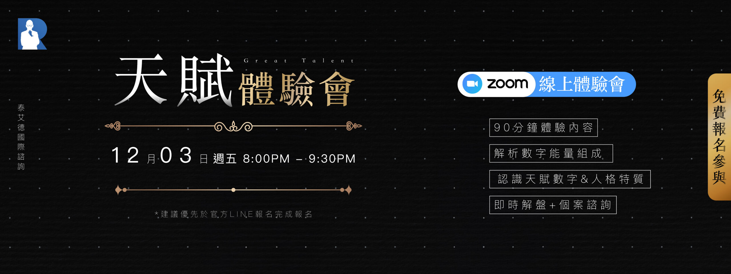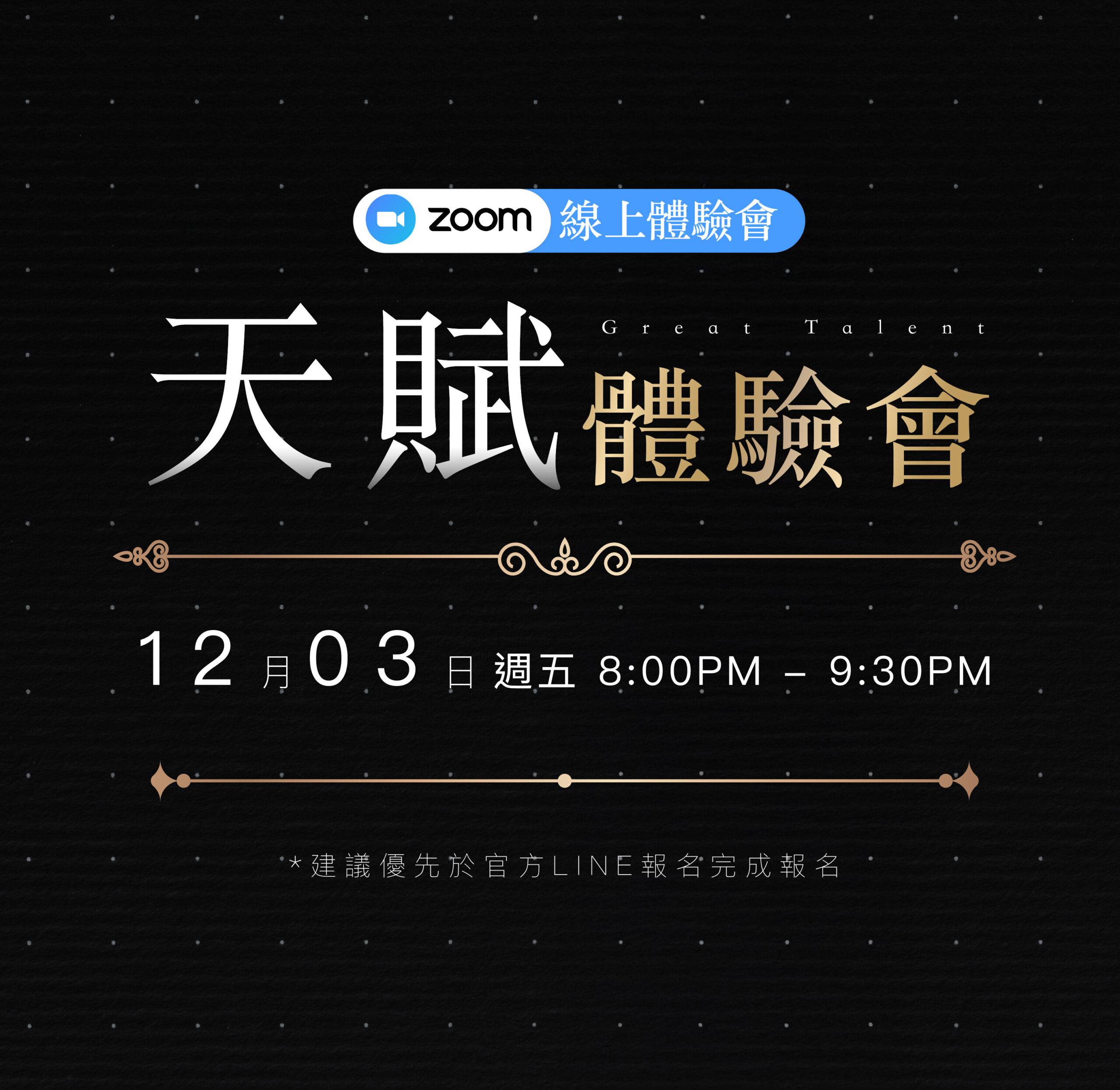 ZOOM線上體驗會|90分鐘時間,由RICO老師開講。